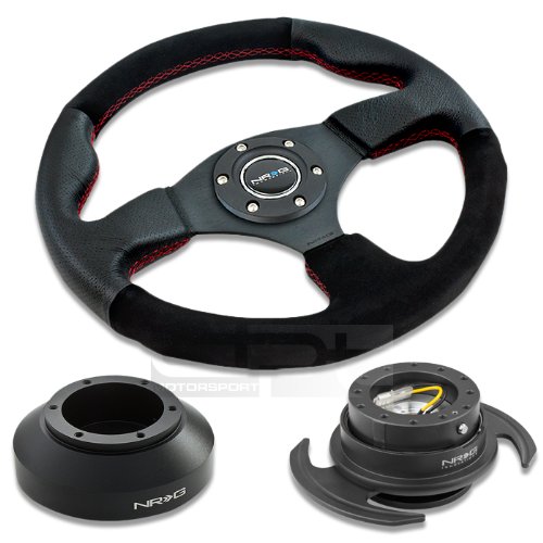 Features100% brand new, Never Been Tried or Installed12.5" / 320mm Black Suede and Leather with Red Stitching; ST-012R-SShort Hub Adapter; Direct Bolt-on Design, Perfectly fits Any Wheel with a 6-Bolt Standard Design; SRK-150H. Please go to the NRG Website for Detail Application of the Hub AdapterNRG Brand Quick Release Generation 3.0; Ball Bearing Mechanism; SRK-650GMWill Require the Removal of Special Features from OEM Steering Wheel Such As Cruise Control and Air Bag NRG-SRK-150H+012R-S+650GM, NRG Innovations 12.5" 320mm Black Leather Red Stitch Suede Grip Racing Steering Wheel Combo with 6 Hole Short Hub Adapter with Gen 3.0 with Handle Gun Metal Quick Release Kit SRK-150H?